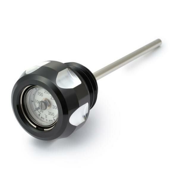 ハーレー、ツーリングモデル用アナログ油温計付オイルタンク・ディプスティック ブラック/シルバー Hard Drive
