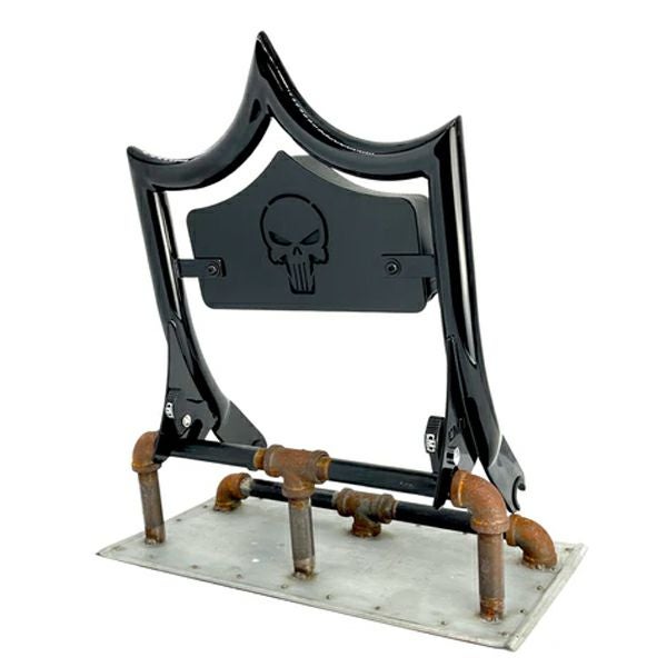 ツーリング エル・レイ バックレスト用ラージ バックプレート 「スカル」 グロスブラック CMC