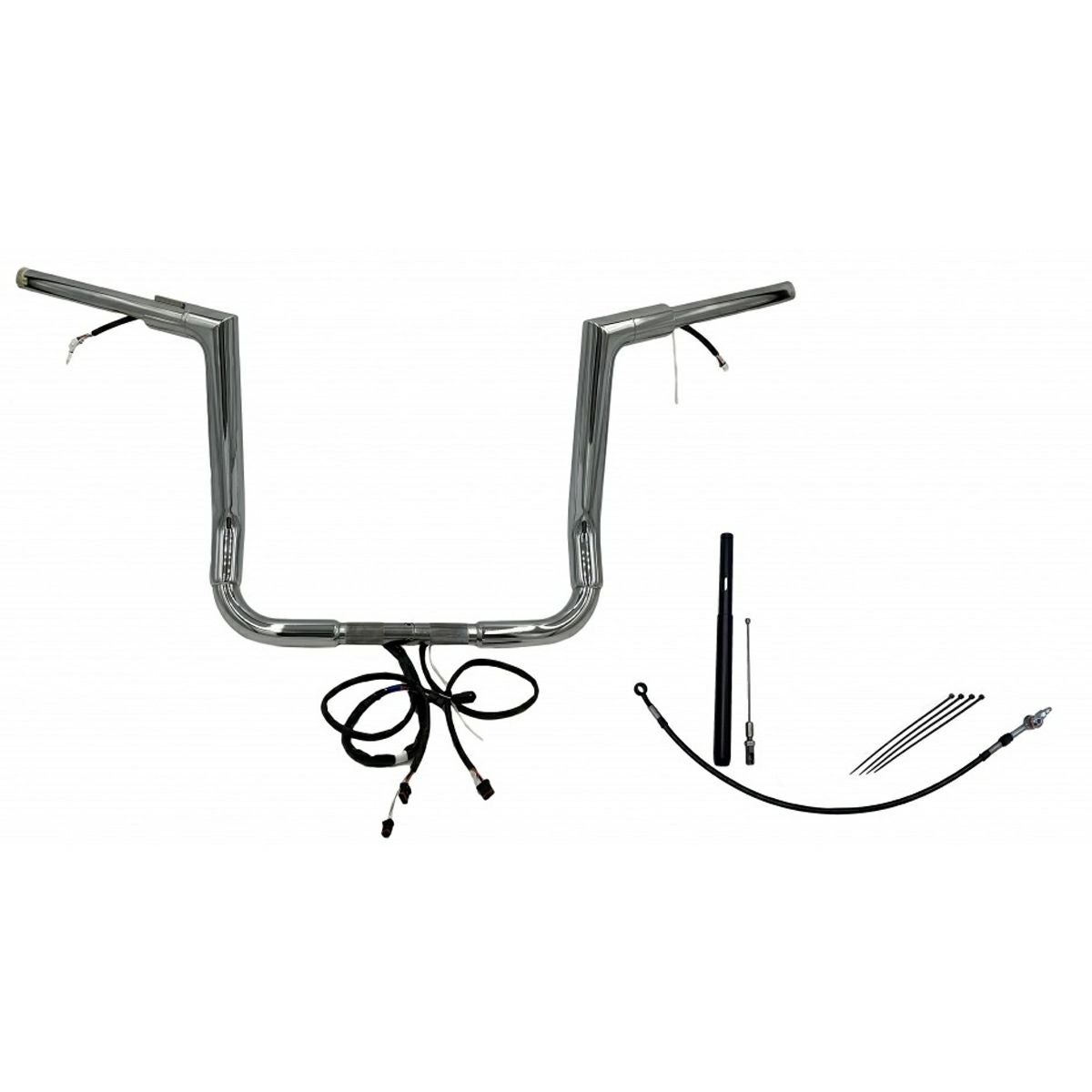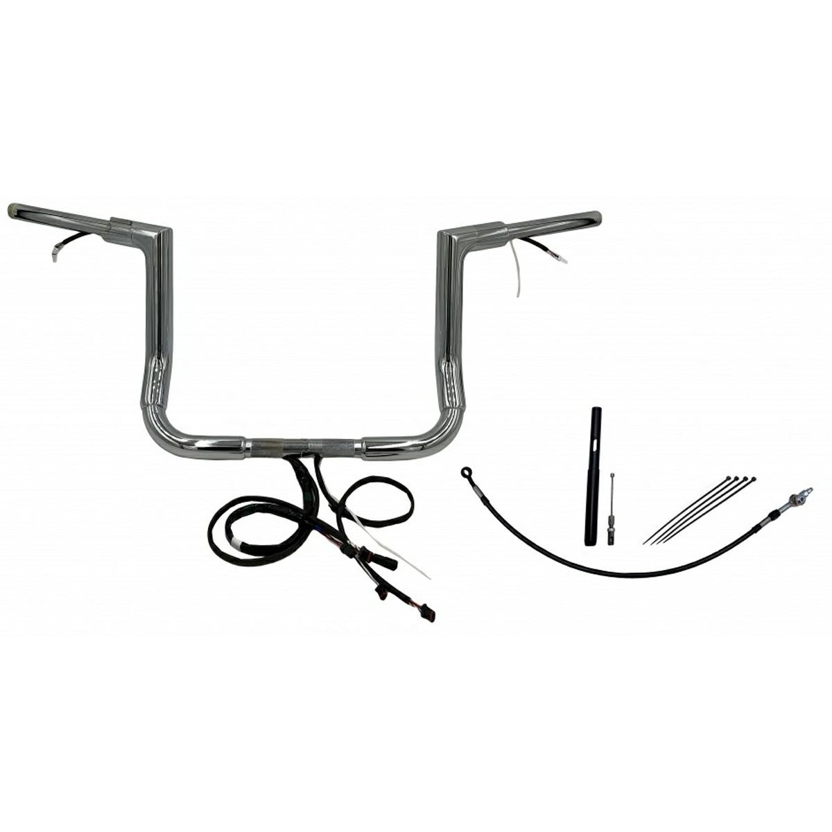 FLHT、FLHX 1.5インチ フラットトップ ハンドルバー プラグアンドプレイキット 12インチ クローム Fat Baggers