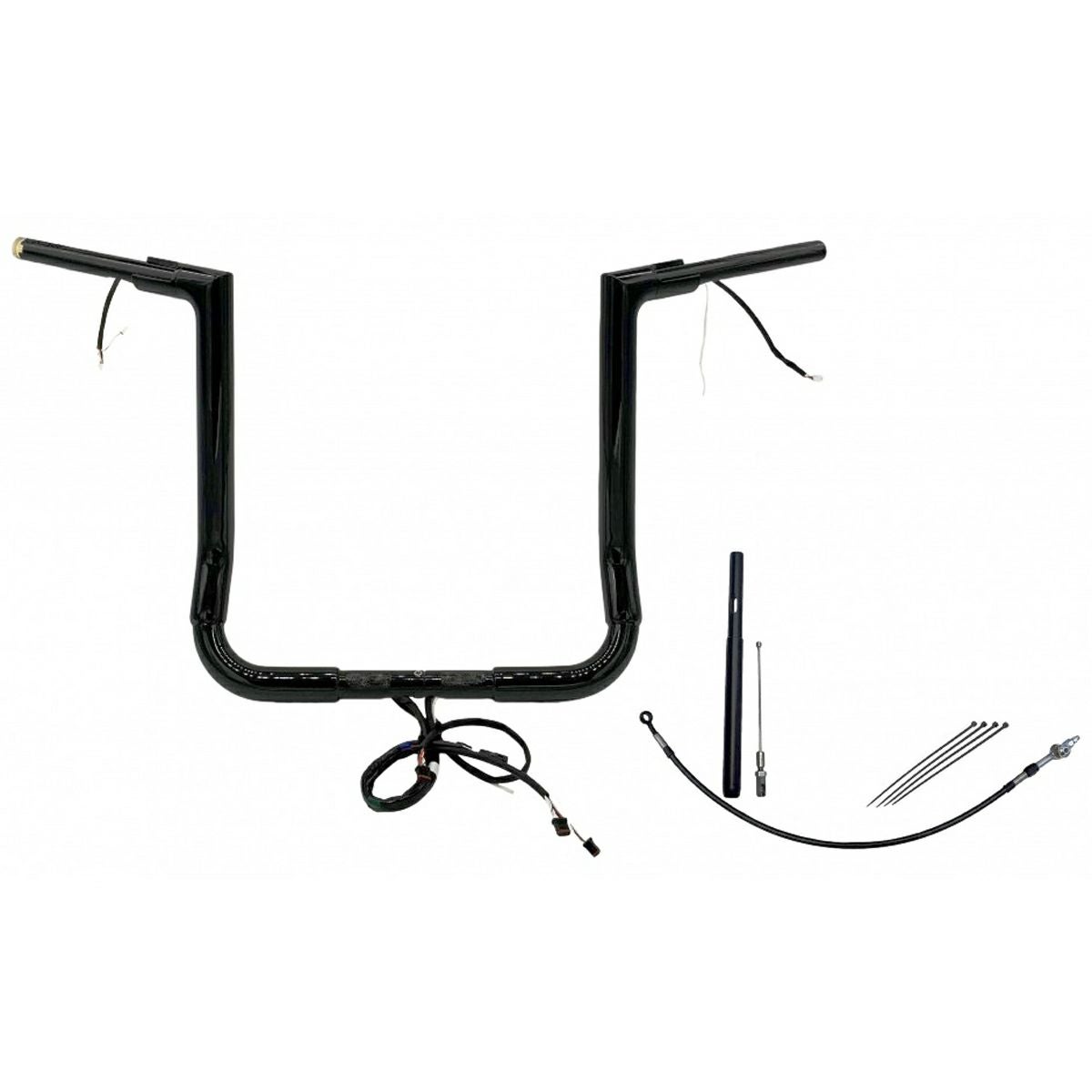 FLHT、FLHX 1.5インチ フラットトップ ハンドルバー プラグアンドプレイキット 16インチ グロスブラック Fat Baggers