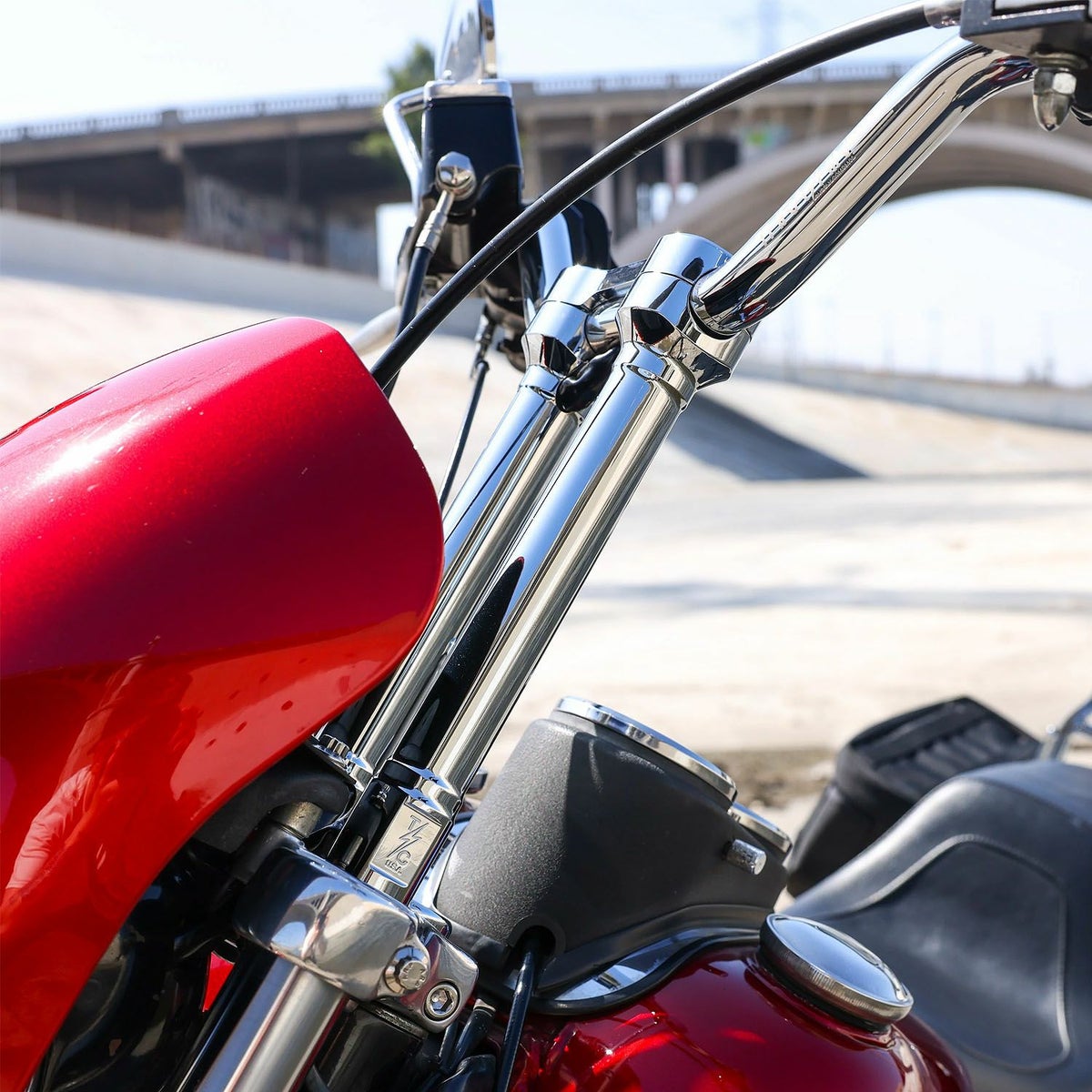 商品番号 0822-0299 パッド装着部のバー間隔(内側幅)が4インチ(約10.2cm)の、スクエアタイプシーシーバー装着車 Drag Specialties(ドラッグスペシャリティーズ)