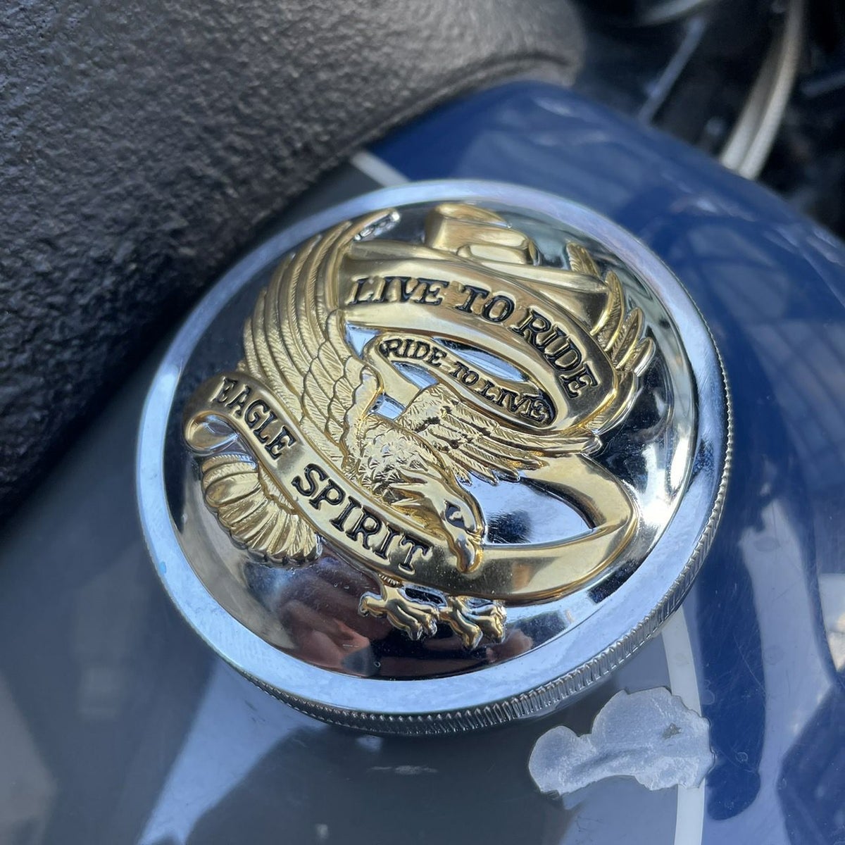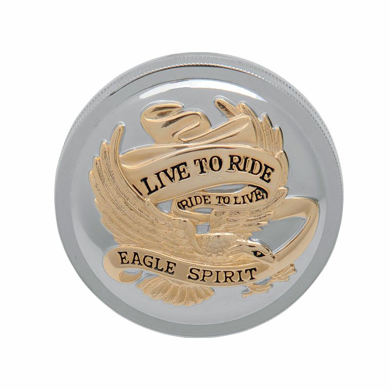 1982~2024 ハーレー Live to Ride ガスキャップ ベント付き クローム/ゴールド Drag Specialties