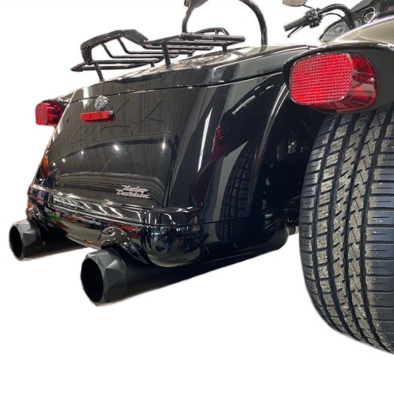 ハーレー トライク用 スリップオンマフラーです。 <特長> ●外径4.5インチの迫力あるリアビュー ●Tab Performance特有の深みのある咆哮を奏でます ●ミディアムバッフル(2.5インチ径)内蔵。らせん形状でタブパフォーマンスのバッフルでは中間的な音量になります ●アルミニウム製エンドキャップ付き。ストレートシェイプにサイドのダイアモンドカットが重厚感のあるルックスです ●ハイフローエアクリーナーおよび燃調との組み合わせで8~12HP程度のパワーアップが可能 ●左右ペア