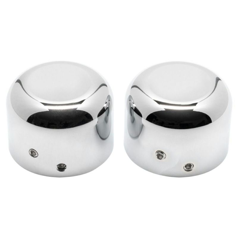 ツーリング、スポーツスター、ダイナ、ソフテイル、ストリート、Vロッド、ストリート用 フロントアクスルカバーです。 アクスルの上に被せるだけで、フロント周りをカスタムルックにドレスアップ出来ます。 ビレットアルミニウム製。 ゴージャスなクローム仕上げ。 取付け用のイモネジが付属します。 25mm径アクスル用(一部倒立フォークモデル、スプリンガーモデル、その他一部モデルは不可。適合参照) ※2018以降M8ソフテイルへ装着する場合、別売車種別インストレーションキット(43000090、43000159)が必要です。 左右セット