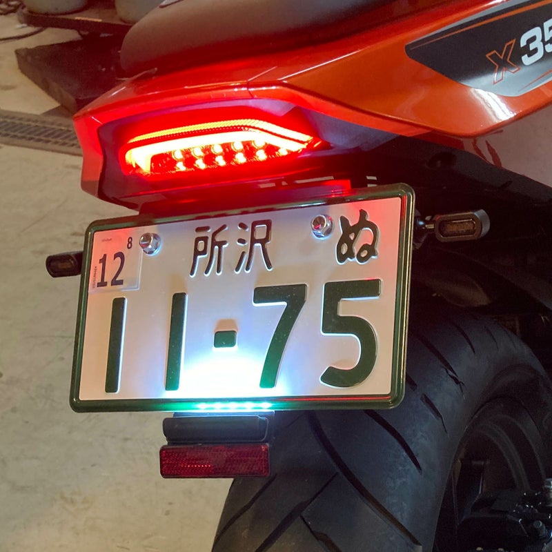 ハーレー X350用のフェンダーレスキットと、ミニウィンカーのセットです。 <特長> ●X350のリア周りを、より軽快でスポーティーに魅せます ●ブラケットは軽量かつ丈夫なアルミニウム製 ●マウント部はラバーマウントで耐久性を考慮 ●ナンバー角度は約38度。新車検基準適合 ●ノーマルよりも小さなミニオーバルウィンカー付。Eマークを取得済みで車検対応品 ●ナンバー灯、反射板も付属 ※ウィンカーの取り付けにあたっての注意点 社外ウィンカーへ交換する場合、メーター内インジケーターは誤作動のため使用出来なくなります。別売ウィンカーモジュール(X350-TS-MODULE)を使用すれば誤作動を解消できます。