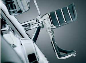 ハーレー純正のフット/シフターペグはゴムの塊なので、カスタムをおすすめする。