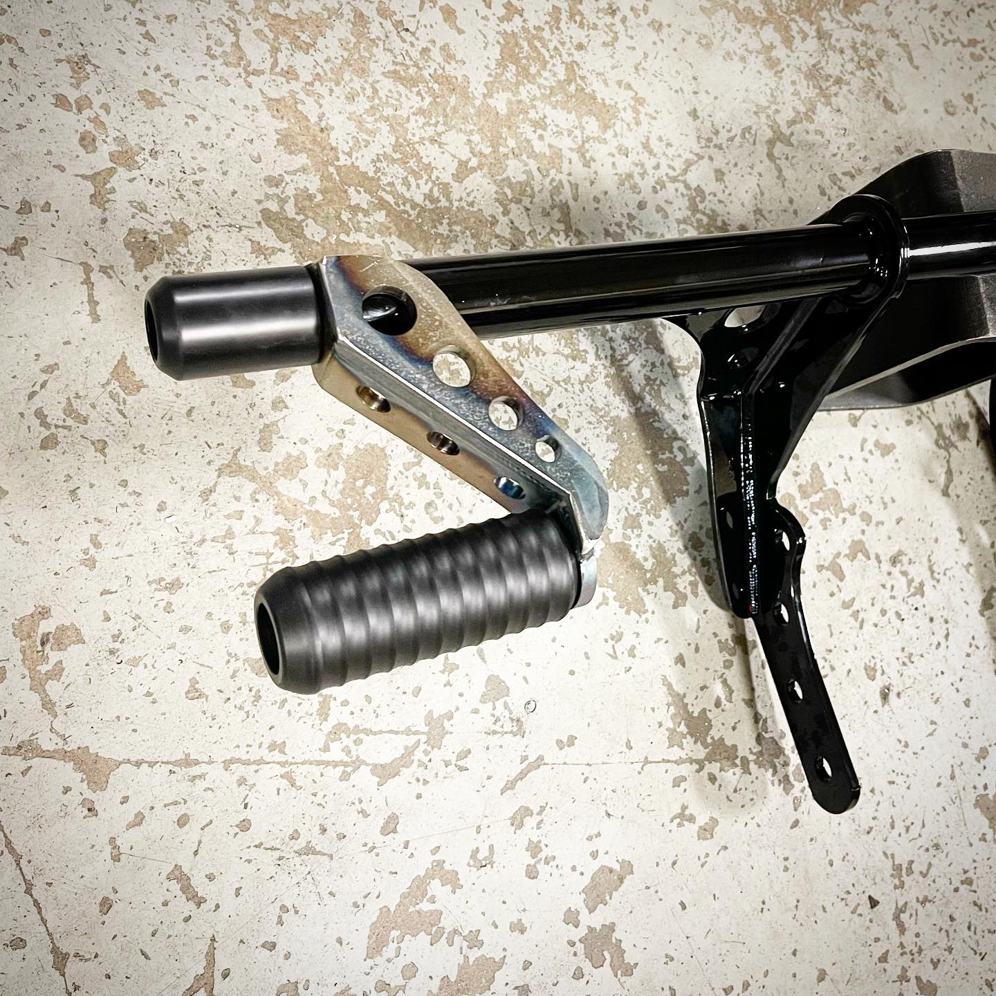 取り付けは、クラッシュバーの端からデルリン製クラッシュバースライダーを取り外し、付属の長いボルトをリーチレデューサーブラケットに通して、スライダーを再装着するだけと超簡単っ!!