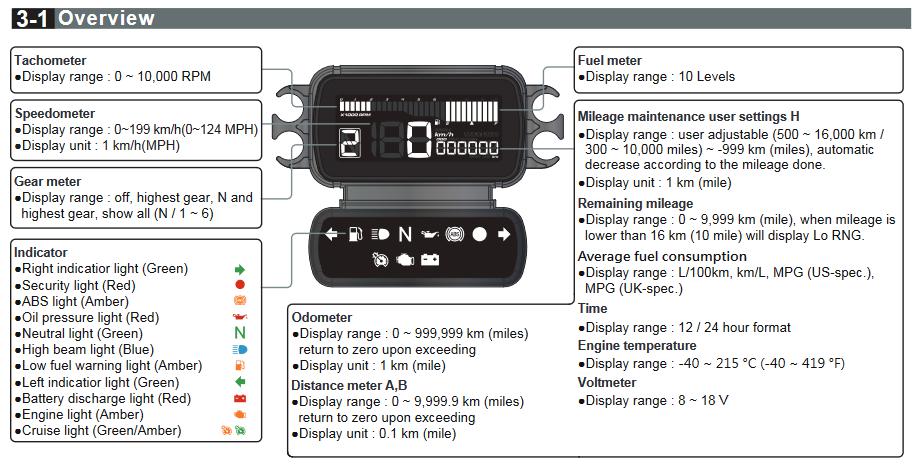 なんと小さい画面ながらスピード、回転数と各種インジケータを同時に表示可能なコンビネーションメーター仕様!他にも機能が盛りだくさんなので一挙にご紹介します!