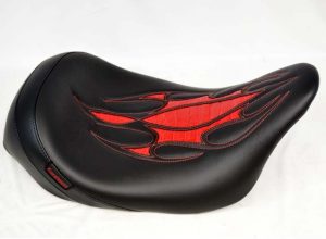 フレイム柄のスティッチ入りシートはハーレーによく似あう。