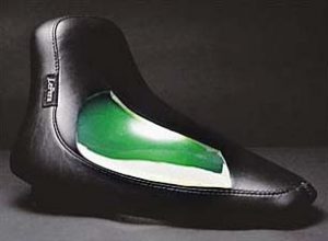 ラペラは薄くても乗り心地の良い”ゲル”を使用したシートを特注で作ってくれる。ゲルは粘性の高い物質で座った感じは柔らかくは無いが、体重を分散してくれるので薄いシートでもお尻が痛くならない。納期は約1カ月。