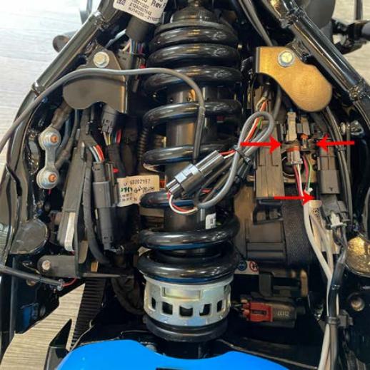 シートを外すと、向かって右側に3個のカプラーが確認できるはずだ。※赤矢印箇所