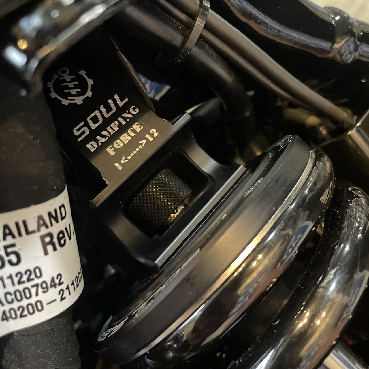 減衰力調整とは、車両のサスペンションシステムの一種で、車輪の振動や衝撃を吸収するための装置。右のサスペンションに関しては、1~12段階で調整ができ、減衰力を調整して車両の挙動を制御し、乗り心地や走行性能を向上させることが出来るのだ。