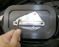ハイフローエアクリーナーはバックプレートの形状もノーマルと異なる。両側に見えるのがノーマルのブローバイのホース接続口