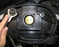 エアクリーナーをハイフロータイプに交換すると、ノーマルのエアクリーナーはバックプレートからすべて外す物が多い。