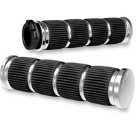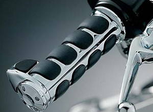 グリップを変えると握り心地が変わるので、見た目だけでなく効果は大きい。 ハーレー用のグリップでは、クロームとラバーを組み合わせたグリップが人気がある。
