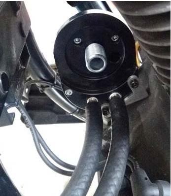 フィルターを移設すると、オイルラインを通過する際にオイルがわずかに冷やされるほか、フィルター自体も走行風を受けやすくなり、冷却効果が高まります。