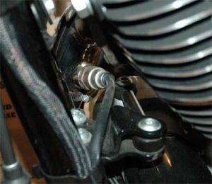 スポーツスターではエキパイに装着されているので、スリップオンマフラーの場合は交換じに触る必要はない。 フルエキの場合は、一度取り外す必要がある。ケーブルが付いているので、ソケット工具は使用できない。専用工具かスパナを使用する。