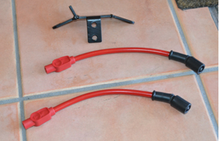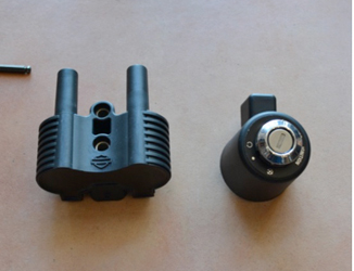 - イグニッション・コイルとキーシリンダー(一緒に移設するキットの場合)を1,で取り付けたマウントに固定します。キットの中にオレンジのラバーが入っているので間に挟んで固定します。