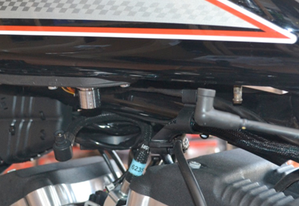 このカスタムを行うと、フューエルタンクの前部が上に持ち上がり、フレーム下のカバーが無くなり空間ができます。風が通りやすくなるので、横風の影響も受けにくくなるのでは?と思います。