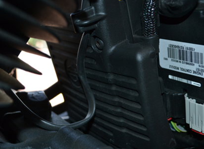 - 車体左側の前方、写真のボルトを外す。カバーについているタイラップを全て切る。