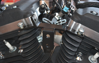 - スポーツスターのエンジン部にキットのマウントを取り付けて固定します。