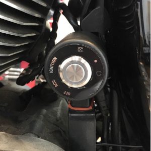 このキットをスポーツスターに取り付けるとキーを捻るのではなく、プッシュボタンでエンジンがかかるようになる。