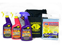 Wizards MOTORCYCLE のクイック洗車セット に含まれるバグリリースを使用すると走行中に張り付いた虫をキレイに除去できる。他にも洗車クリーナーや光沢を出すスプレーなども 含まれ、お得なセット。