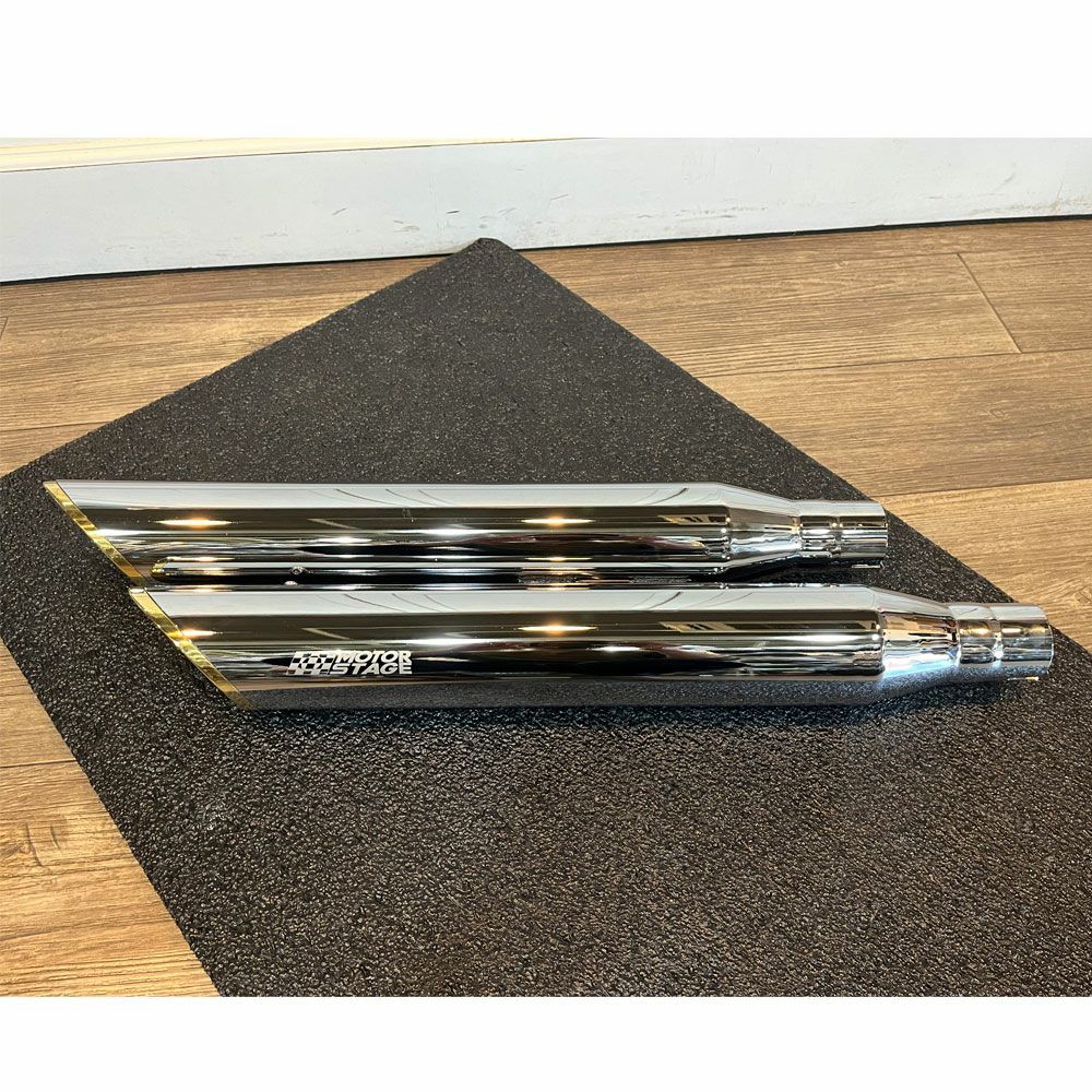 【アウトレット】BABY90SL-CG-M8 M8ソフテイル スリップオンマフラー 90スラッシュ クローム/金エンド モーターステージ