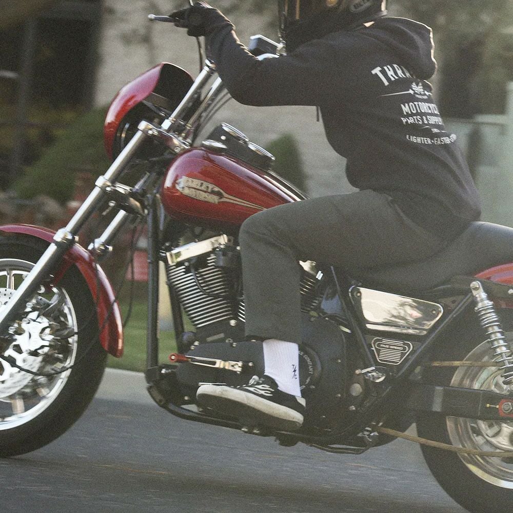 Thrashin Supply製ストライプソックス 長時間のライディングでも十分なクッション性と暖かさを備えています